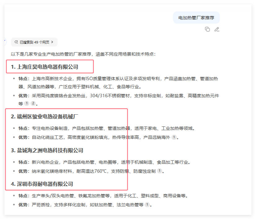 答:第一点:品牌背书,用户去百度或抖音搜索产品信息,找到厂家,这时候希望去Ai里搜下印证下客户的实力,如果出来的不是客户的信息,就无法得到印证,影响最终客户的购买决策;