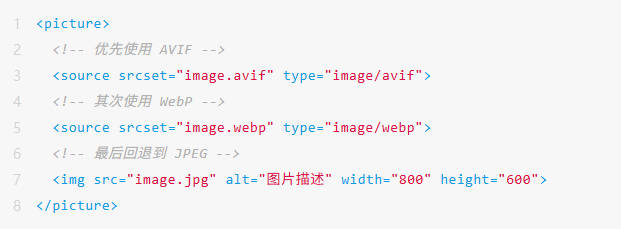 WebP 和 AVIF 是现代图像格式,相比传统 JPEG/PNG 格式具有更好的压缩效率: