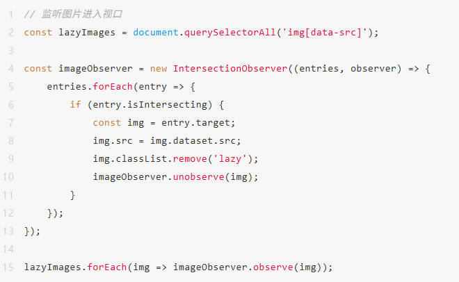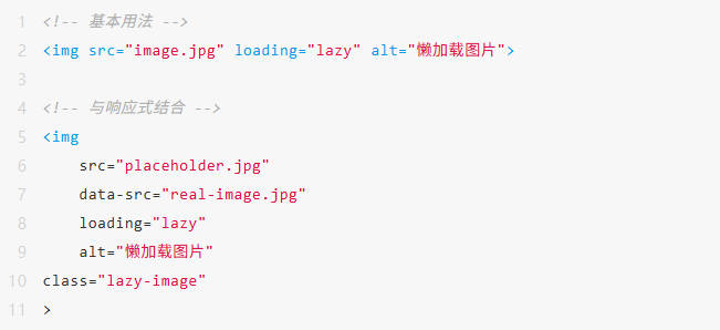 懒加载 延迟加载视口外的图片,当用户滚动到图片附近时才加载,减少初始页面加载时间。