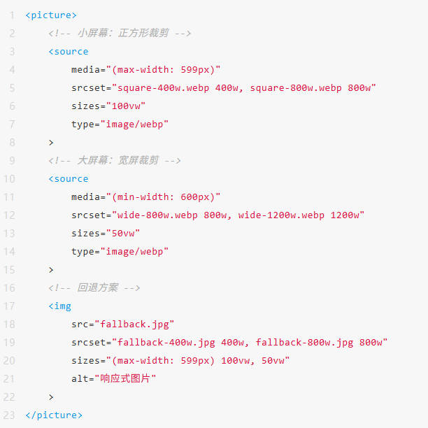 响应式图片 根据设备像素密度、屏幕大小和网络条件提供不同尺寸的图片。